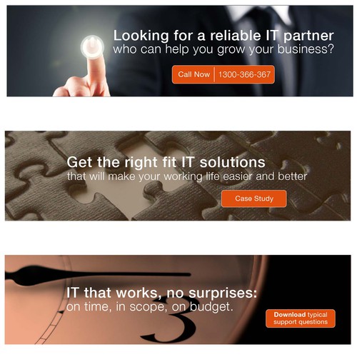 Rotating banner ads on website home page as call to action for potential clients