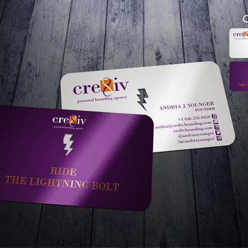 Your creative challenge? Create a biz card that reflects our three related but distinct brands.