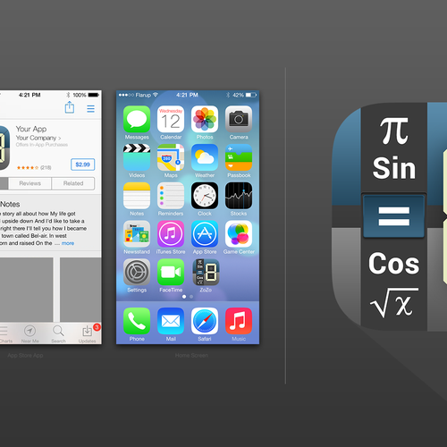 6 buttons and 2 content frames in one layout + an app icon