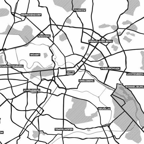 Design an illustration of the city map of Berlin. It is for the printing white boxes. Size 80x60 centimeter.