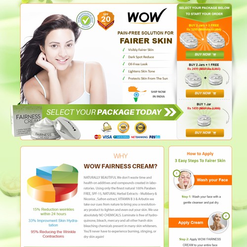 We need an awesome elegant classy landing page for a FAIRNESS CREAM which is targeted for Indian Women. Having an Ind...