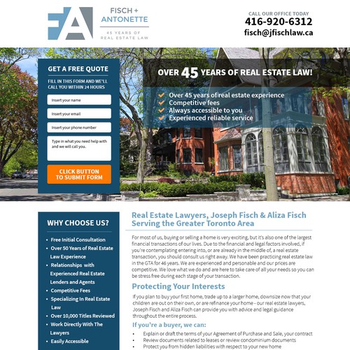 We need a 1 page document/landing page thats clean clear professional so they use our firm to buy and sell their homes!!