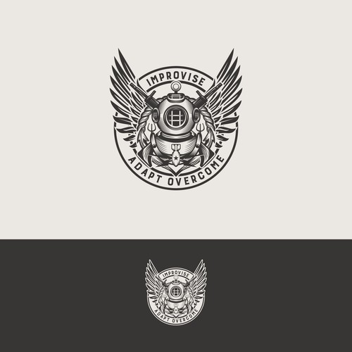 This will be a military type emblem. Incorporating three areas - military diving ( think old school diving helmet, comba