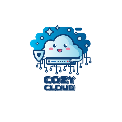 The logo for Cozy Cloud combines whimsical charm with a theme of robust cybersecurity. Central to the design is a cheerf