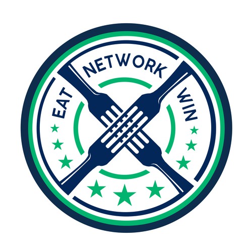 This logo is for a business networking group. The networking group meets for lunch twice a month. It is literally Eat.