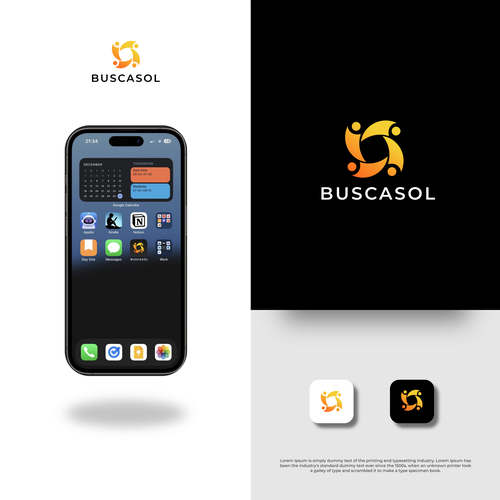 Create a logo for 'BUSCASOL', an app for connecting people to plan and share interests globally. The logo should symboli