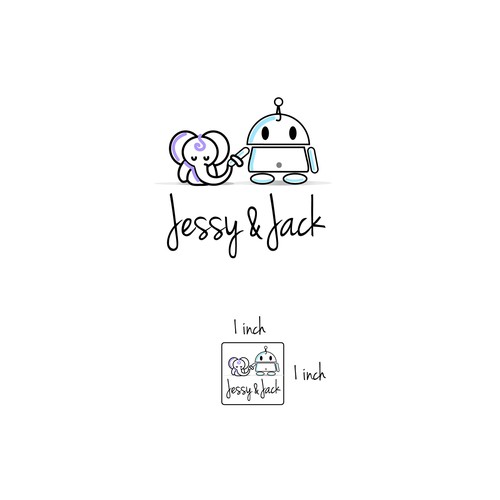 Seeking a line-drawing logo featuring two non-human characters (e.g. an owl and a robot)