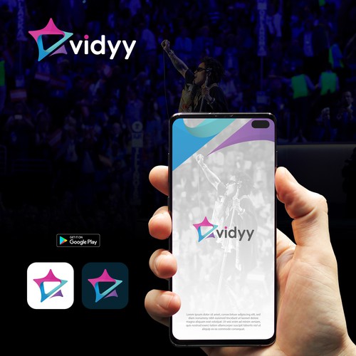 Vidyy is a media platform/app where people can buy short personalized videos from their favorite celebrity. The logo can