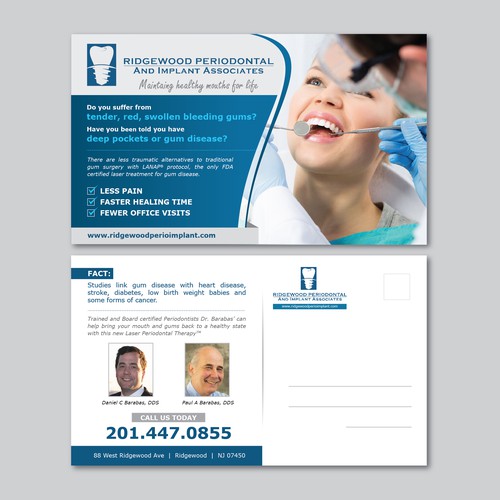 We are a Periodontist office. We have a new state of the art laser that allows us to preform gum surgery with less p...
