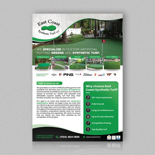 We install residential and commercial synthetic grass and artificial putting greens primarily in North Carolina and Sout