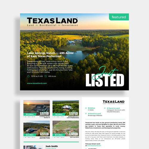 Texas Land and ranch real estate. I sell land and ranches in Texas. The postcard will go to neighboring property owners,