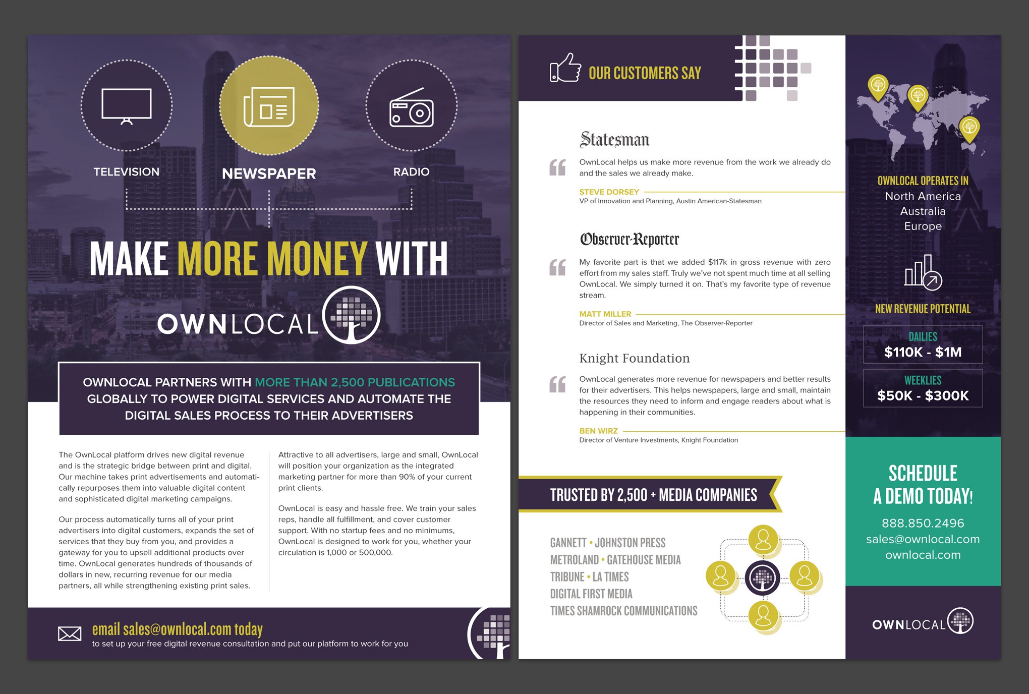 Create beautiful, compelling sales sheet for startup tech company in Austin, TX