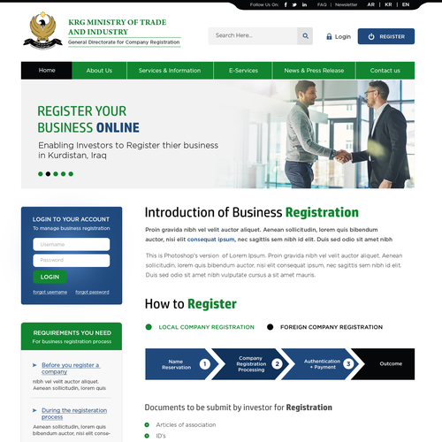 The requirement is to design a website for enabling investors to register their businesses online. The website must b...