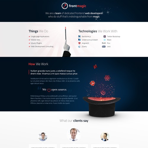 We are a team of frontend web developers about to begin operating under a new name: "Frontmagic". The website is supp...