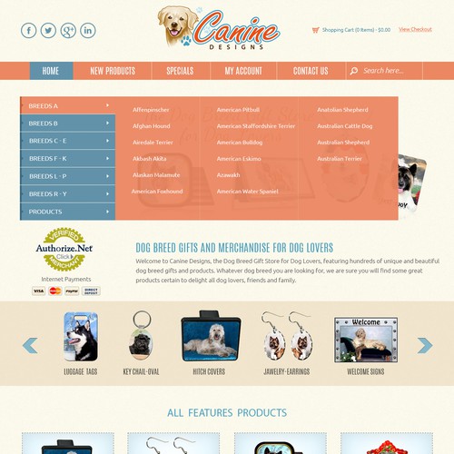 Canine Designs provides dog breed gifts for dog lovers.