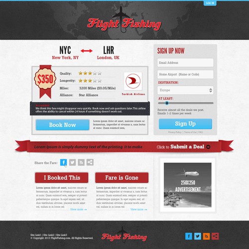 PROJECT HAS DETAILED WIREFRAMES Community-sourced flight deals and custom e-mail alerts for good deals on flights.