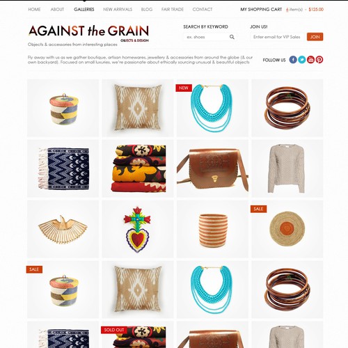 Online retail, objects and accessories sourced globally