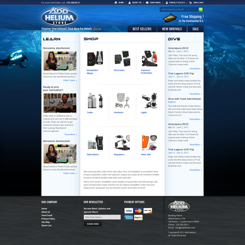 We are a technical diving business, where we sell equipment through an commerce site, we provide training, news and information,