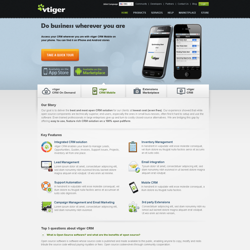 vtiger offers a popular open source (free) CRM software, that helps businesses manage sales, marketing and support activities
