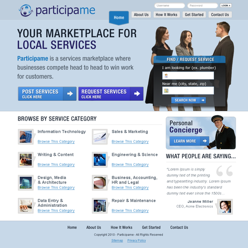 I need website design for my new startup. Please see below for details: 1. Business Information Business Name : Participame