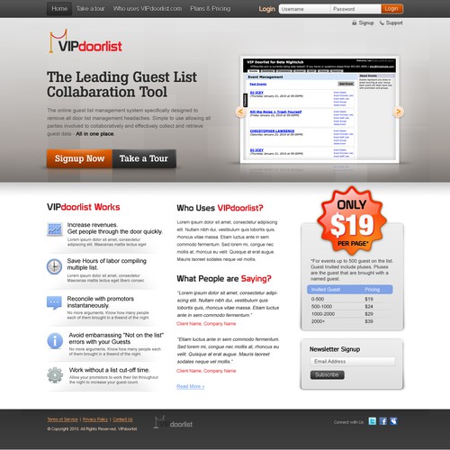 VIPdoorlist.com Landing Page