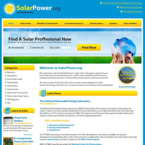 Developing a new non-profit site to help promote and raise awareness of solar power technology.