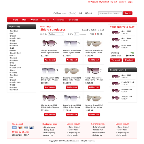 Looking for simple, nice and usable design for sunglasses online store