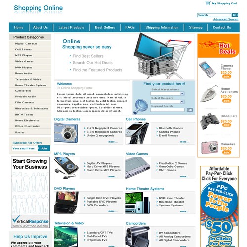 Need a slick 2 page template for shopping sites